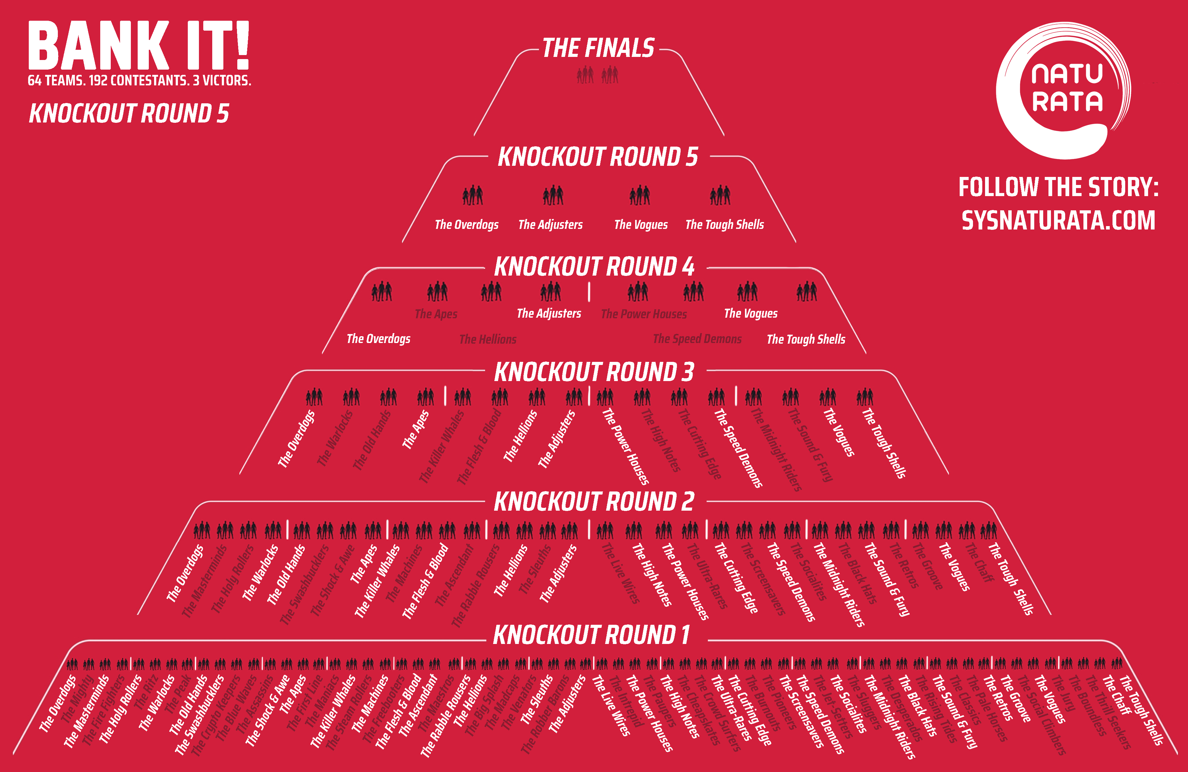 It’s the Vogues, I realize. What are they doing going after the Overdogs? They only need the second slot. Why not focus their efforts on the Adjusters? Both outstanding teams, sure, but the Overdogs clearly offer the stiffest competition.